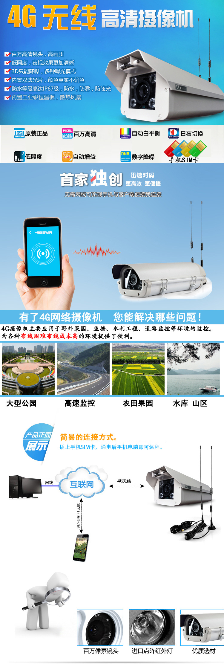摄像机插上4G SIM卡,就可以实现手机、电脑远程查看实时视频和录像下载功能可定制,可OEM ,可对接相关软件与产品
