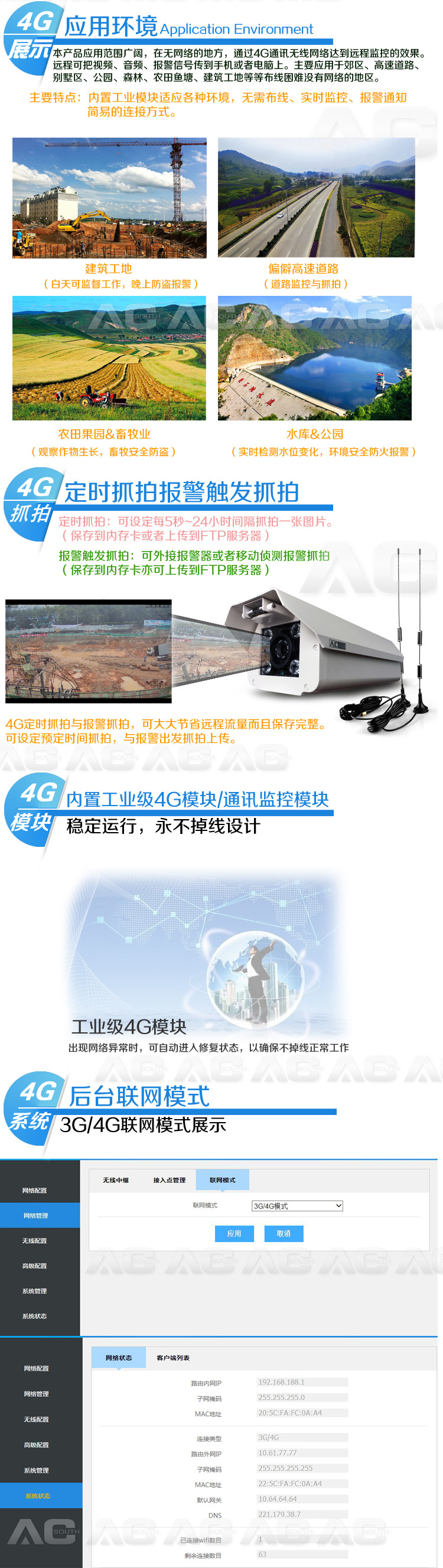 针对3G传输技术的局限性AC监控产品采用4G移动通信传输技术,主要体现以下几个特点;
