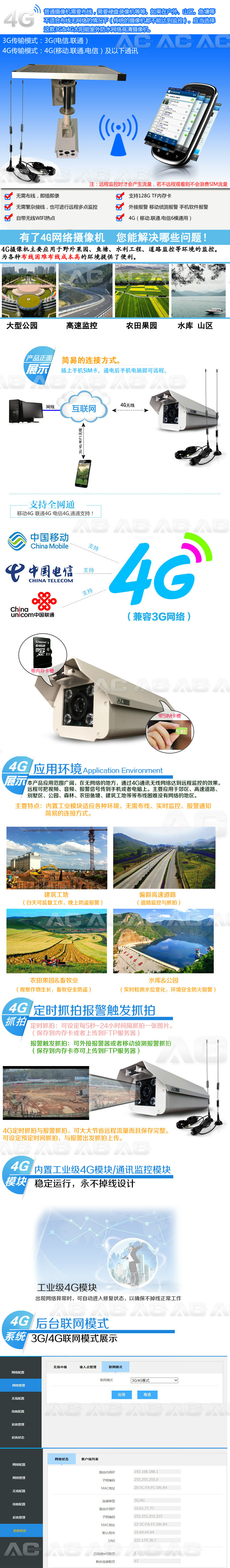 通信方式 支持4G(移动FDD-LTE.联通FDD-LTE.电信FDD 5模通用)/3G(联通WCDMA.移动GPRS,4G可兼容3G模式,)/WIFI热点发射/AP路由中继