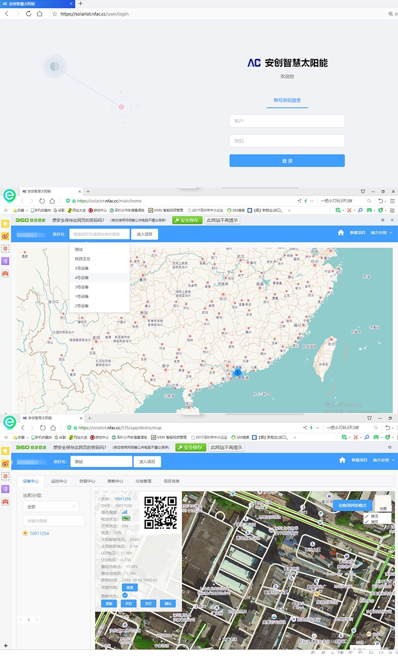 电脑平台登录:打开浏览器,在地址栏输入https://solariot.nfac.cc即可进入安创智慧太阳能云平台。