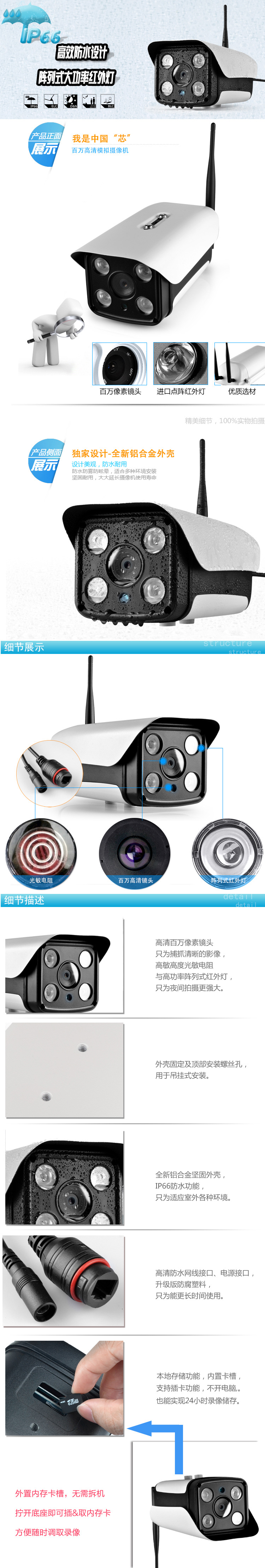 室外防雨插卡监控摄像头